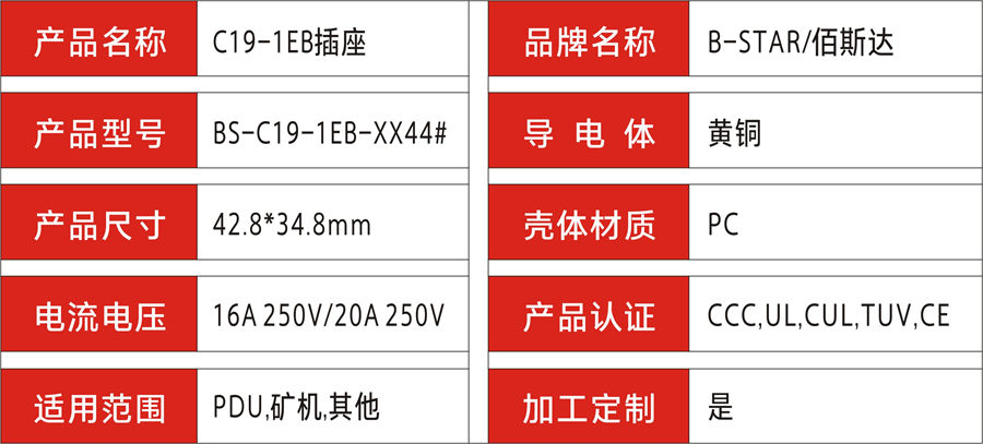 BS-C19-1EB-1544B2固定卡IEC通用PDU插座