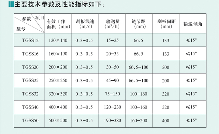 TGSS系列埋刮板輸送機(jī)常用于水平輸送顆粒和粉狀物料,亦能在15°角范圍內(nèi)作傾斜輸送。同時(shí)在單點(diǎn)進(jìn)出料基礎(chǔ)上也可多點(diǎn)進(jìn)料,多點(diǎn)出料。設(shè)備中采用高強(qiáng)度刮板輸送鏈、耐磨導(dǎo)軌,配有防堵和斷鏈停車位置。具有整機(jī)壽命高、運(yùn)行平穩(wěn)、結(jié)構(gòu)尺寸小、輸送量大、能耗低、物料破損率低等特點(diǎn),運(yùn)用于糧食、糧油、飼料等行業(yè)和散裝物料部門。